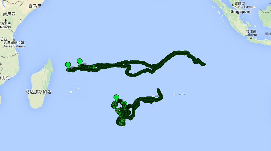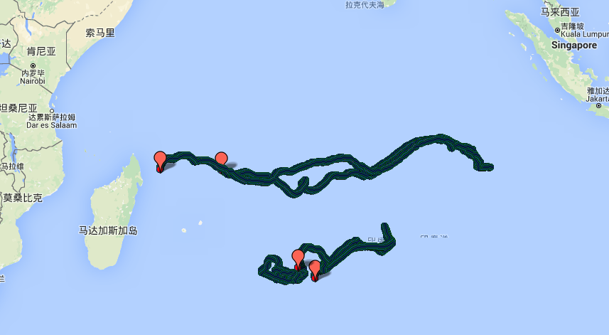 圖2 投棄式氣象漂流浮標(biāo)運(yùn)行軌跡