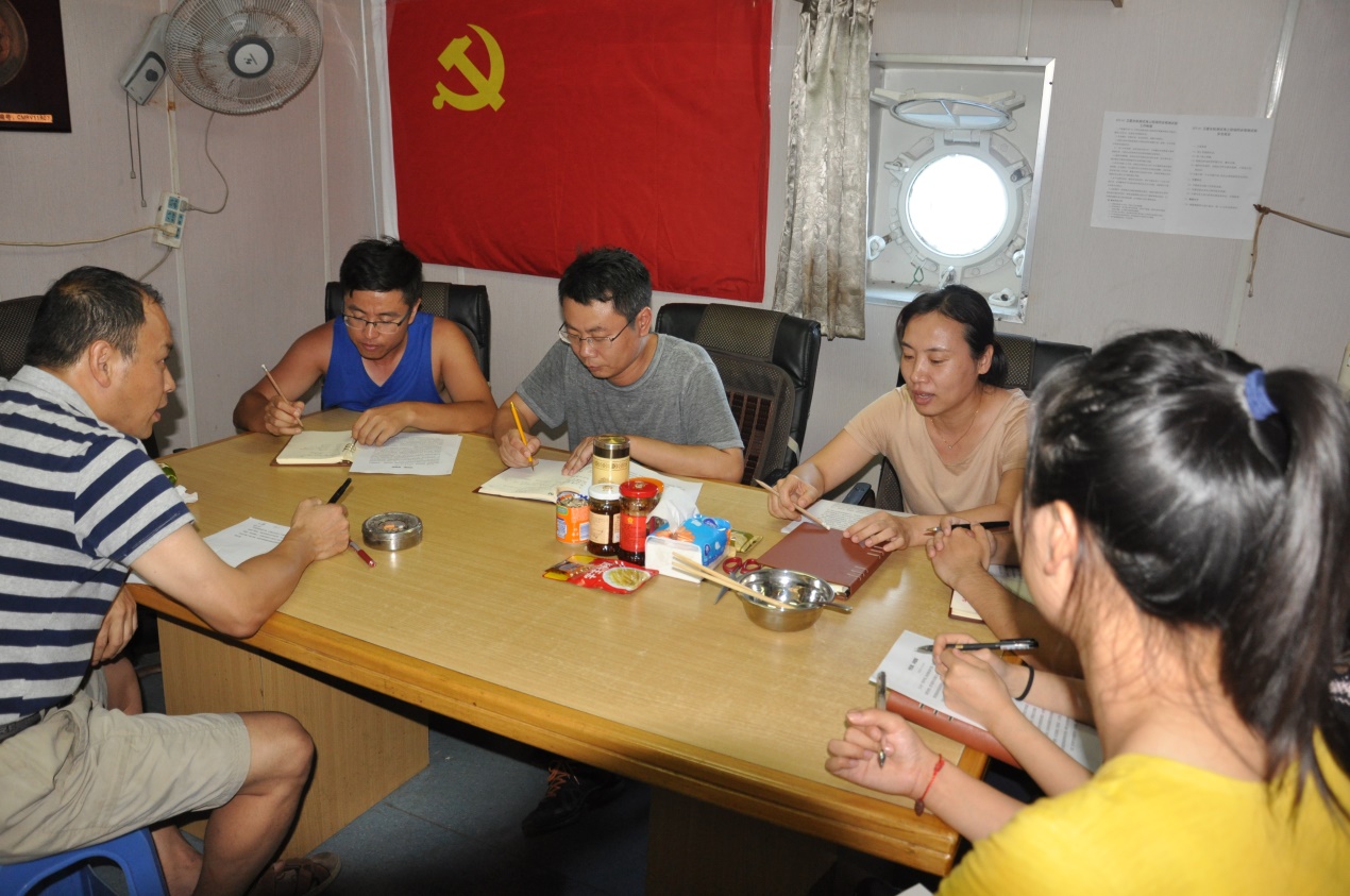 生物光學現場組長李芝鳳同志就本次試驗談了一些切身體會,工作中大家團結協作,擰成一股繩,勁往一處使,保質保量獲取珍貴的現場數據;生活中大家相互照應,克服了重重困難,讓她忘掉了出海前的憂慮和擔心。大氣光學現場測量組長賈迪同志指出要將材料內容與出海實際情況相結合,用紀律和規矩約束自己,從而有利于指導行動,規范自身行為。學生黨員王婧例舉了發生在她身邊不按規矩辦事的實例,發人深省。學生黨員黃筱燦認為黨員同志應當將黨的紀律和規矩作為約束自身的準則,為群眾樹立典范。