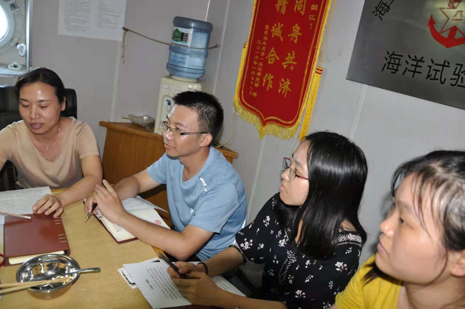 在海上試驗中隊員們一般會經歷三種狀態,從剛上船初期的興奮到中期的疲憊再到后期的焦慮。聯合黨小組將組織學習的時間、內容與隊員們狀態結合起來,此次學習選擇在第二航段即將結束、試驗任務過半的階段,開展的非常及時,此時隊伍已磨合到位,既為試驗隊員避免疲憊期打氣鼓勁,也為后續的試驗任務的順利開展提供了堅強的組織保障。(遙感室)