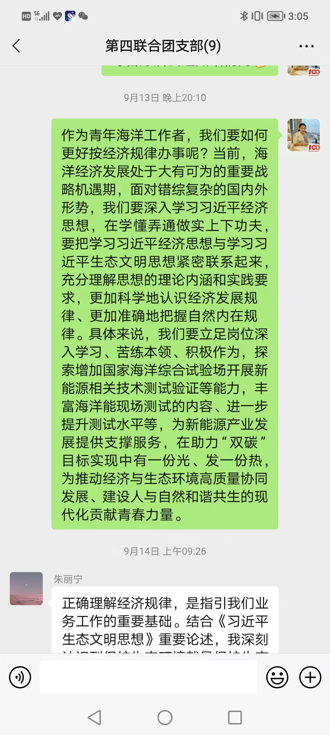 通過參加本次專題活動,支部團員紛紛表示,作為新時代的海洋青年,既要在書本上下功夫,深入學習習近平新時代中國特色社會主義思想的理論內涵和實踐要求,又要在工作中下功夫,更加科學認識經濟發展規律、更加準確把握自然內在規律,苦練本領、積極作為,為推動經濟與生態環境高質量協同發展貢獻青春力量。(第四聯合團支部 蘆穎)