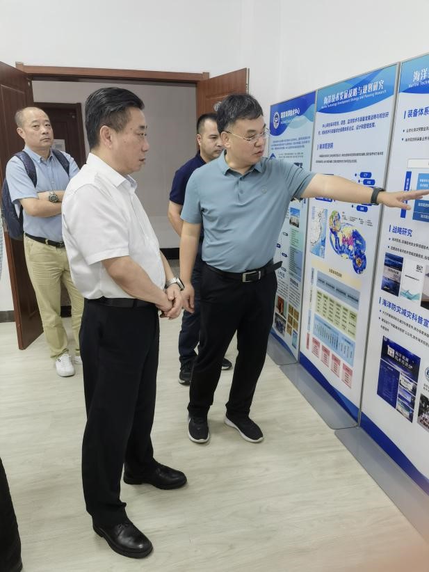 中心動態2023年8月10日,為推進浙江海洋強省建設、加強與國家技術支撐單位之間的聯系與合作,浙江省自然資源廳黨組成員、副廳長阮飆帶隊訪問我中心。中心主任、黨委書記彭偉陪同參觀中心科技成果展室和海洋儀器裝備動力環境實驗室并主持座談,中心副主任李紅志、業務處和相關業務部門負責人參加座談。